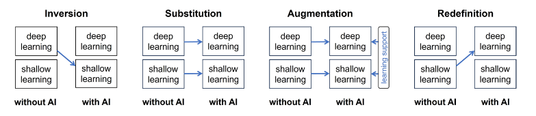 - Augmentation: technology enriches tasks with additional cognitive learning support.